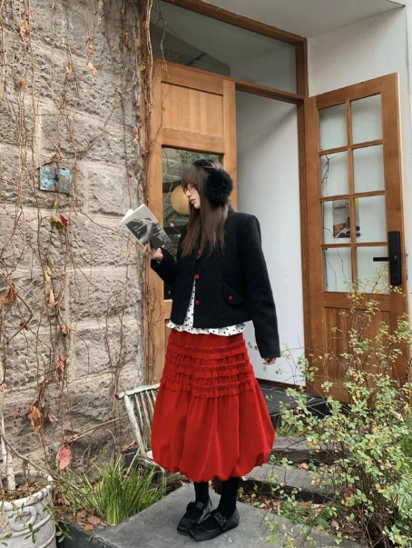 这种穿法对梨形和苹果型身材的姐妹都特别友好,不但包容遮胯,还能拉高腰线。
