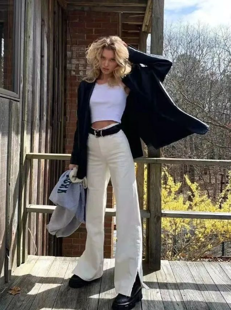 通勤时穿梭于繁忙的都市街头,用一件白色的小香风外套,搭配黑白色西装裤,轻松穿出云淡风轻的优雅。