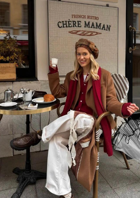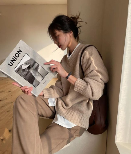 这一穿搭风格主打低饱和度的彩色搭配柔软轻盈的面料,给人一种温暖、松弛的感觉。