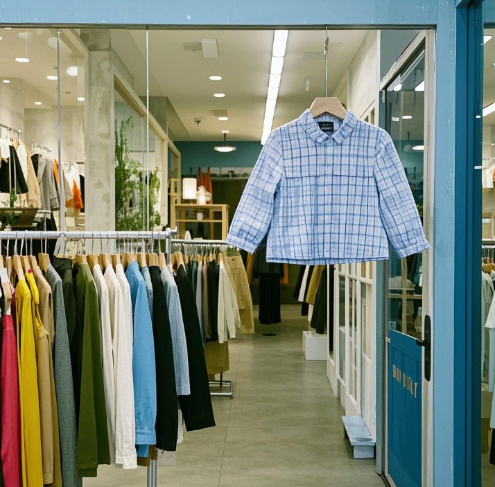 - 试衣间悬挂同系列不同色款服装