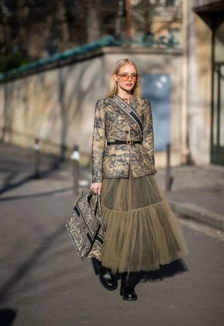 5. 廓形夹克 + 欧根纱裙子 + 长筒靴(图 7)